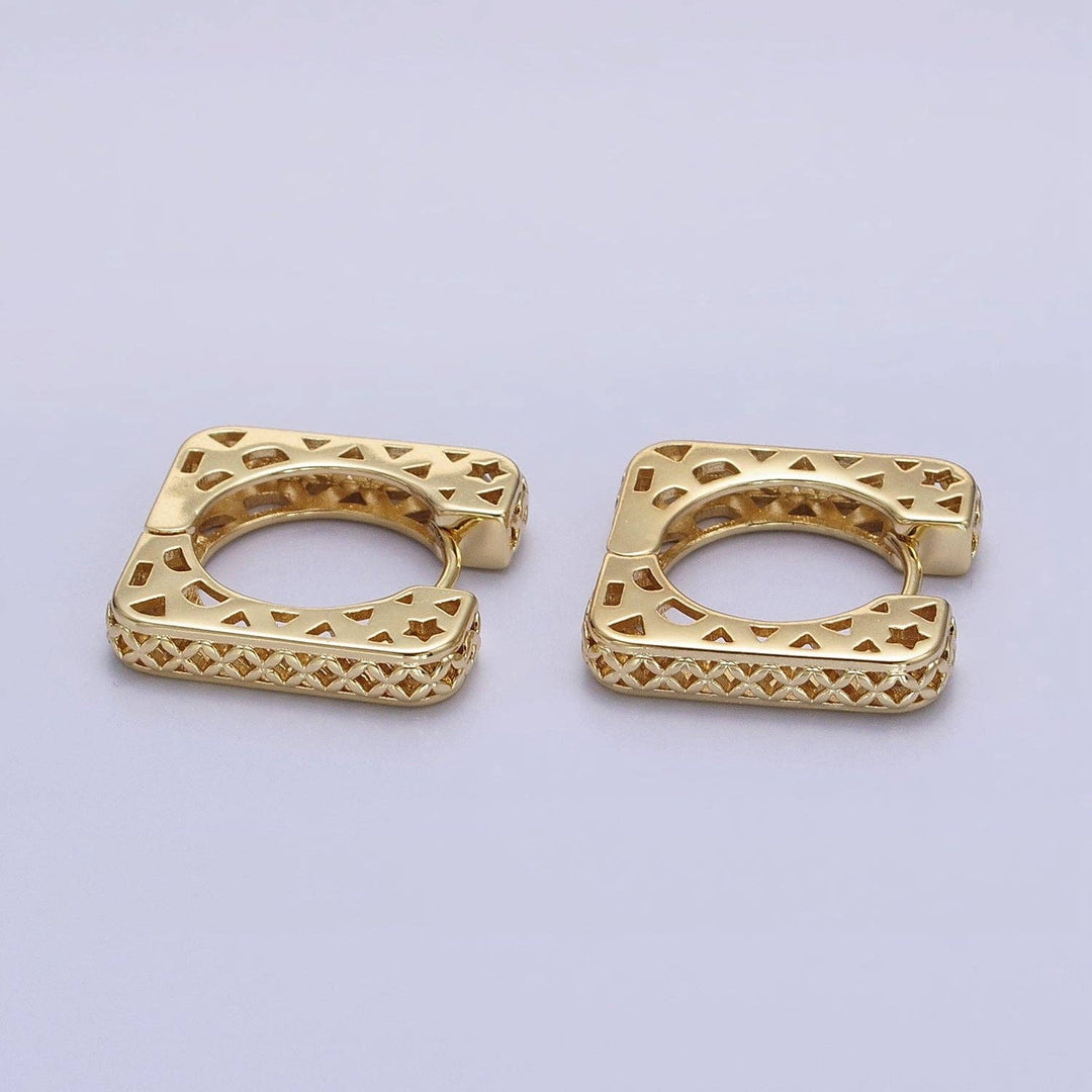 14K Gold Filled Filigree Star Thin Square Huggie Earrings