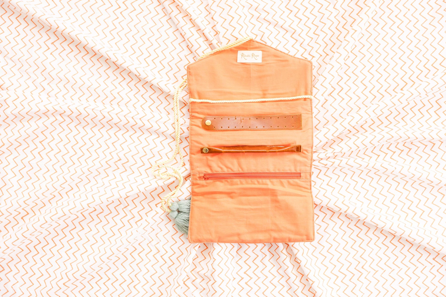 Featuring a zippered pouch, spacious pocket, a dedicated ring roll, and an earring panel that holds up to 12 pairs of earrings, it's designed for convenience on the go.