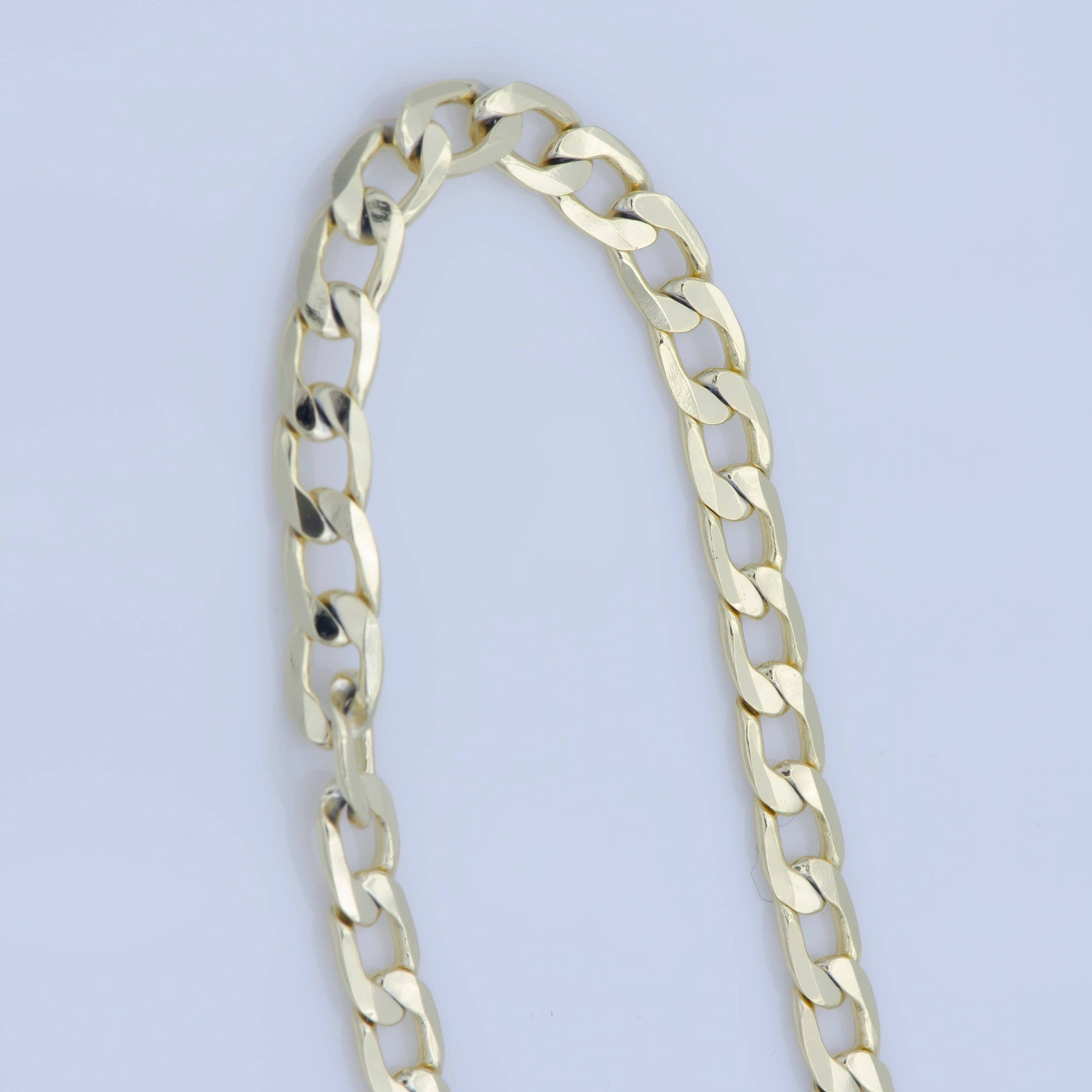 Elevate your necklace collection with this classic 14K gold filled Cuban link chain. The 3mm flat links offer a bold yet balanced aesthetic that works beautifully on its own or layered with other pieces. Made from quality brass with a durable gold fill, it resists fading and keeps its shine through daily wear. At 18 inches, it sits perfectly at the collarbone for a polished, versatile look.