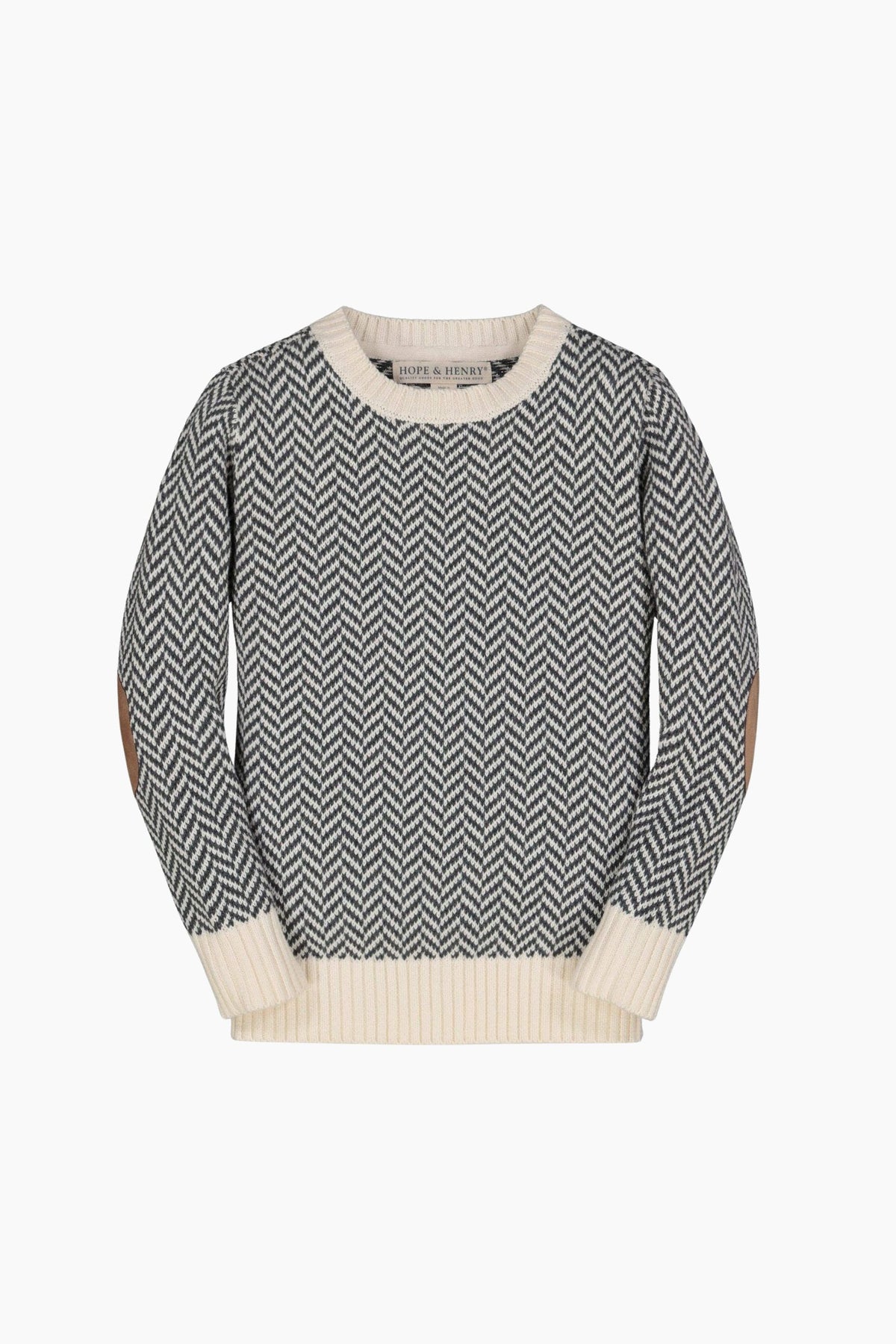 Our cozy and cool crewneck sweater is crafted in soft organic cotton and will keep your little guy warm all season long. Features a sophisticated herringbone stitch in an easy pullover silhouette with faux suede elbow patches. Rib trim at the collar, cuffs, and hem.