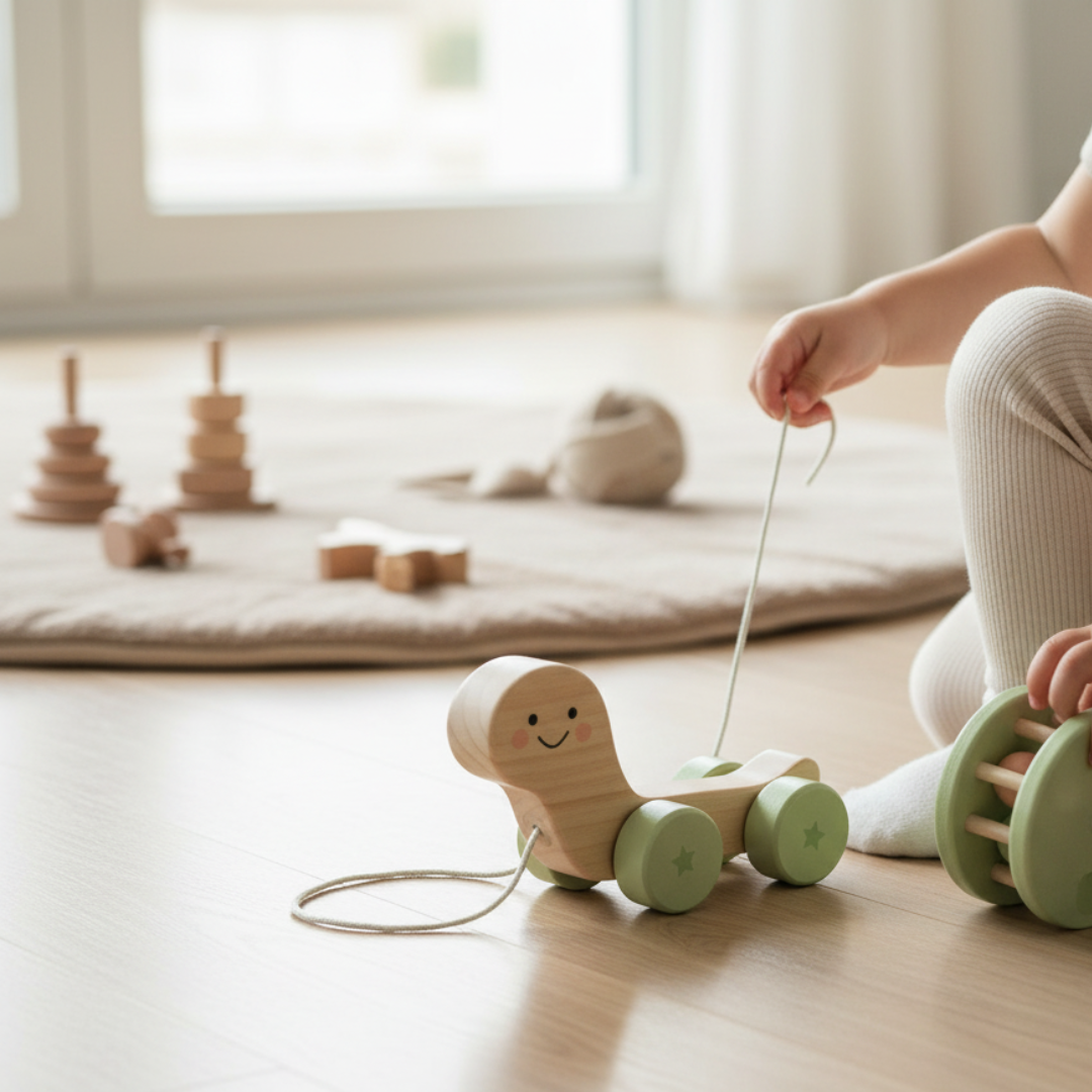 • Interactive pull-along turtle design: Adorable rolling wooden turtle toy with a removable rattle shell encourages crawling, walking, and active movement. Promotes gross motor skills, coordination, and cause-and-effect learning while sparking imaginative play.