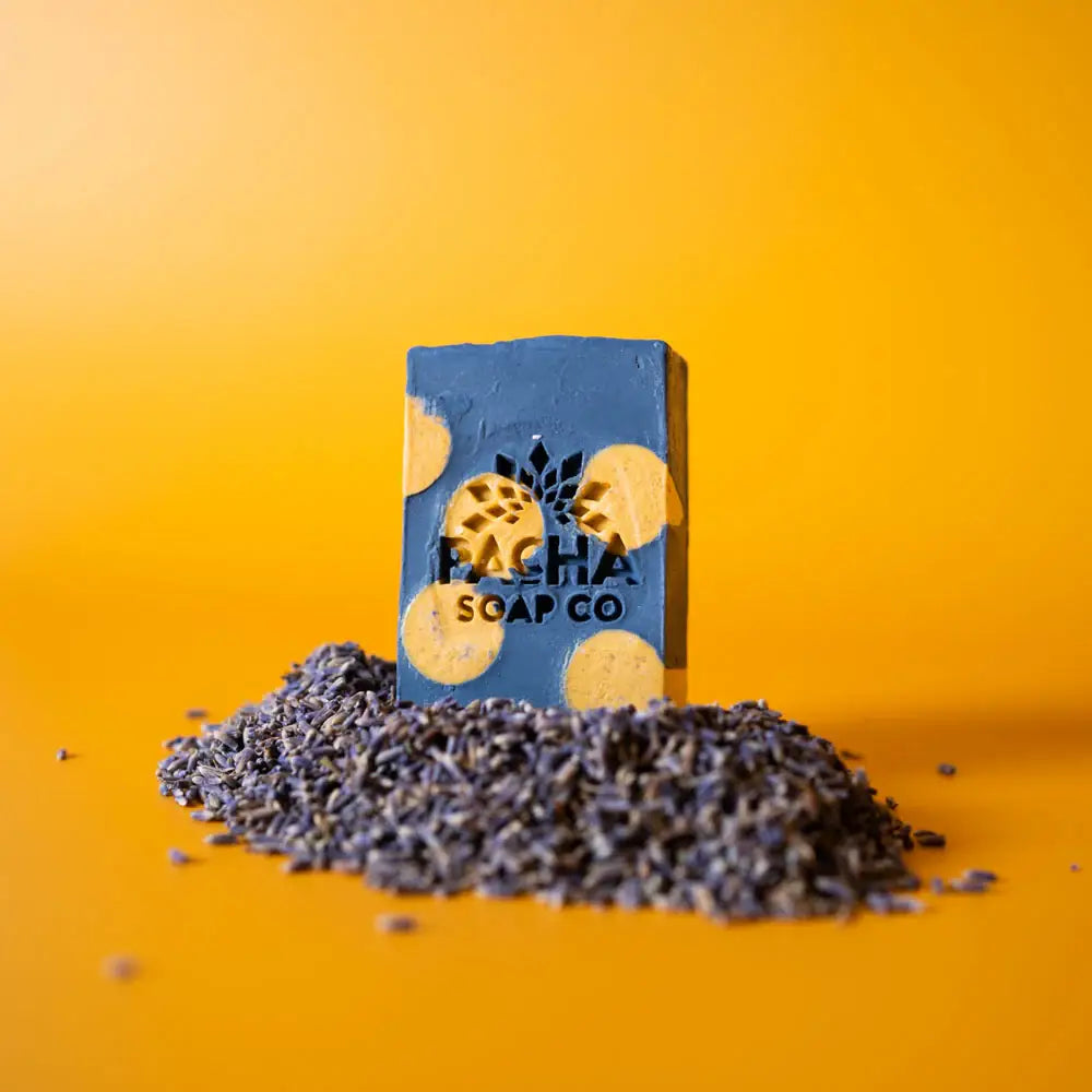 Discover the Pacha Soap Co.'s Lavender & Blue Tansy Bar Soap. Crafted with care and shipped from the USA, this soap not only cleanses your skin but also helps you do good in the world. Free from synthetic fragrances, SLS, parabens, and sulfates, it's a cruelty-free product that aligns with your values. Pacha Soap Co. is committed to spreading goodness worldwide, supporting clean water initiatives, and empowering communities through economic freedom. Enjoy a refreshing bath experience that contributes to a better world.