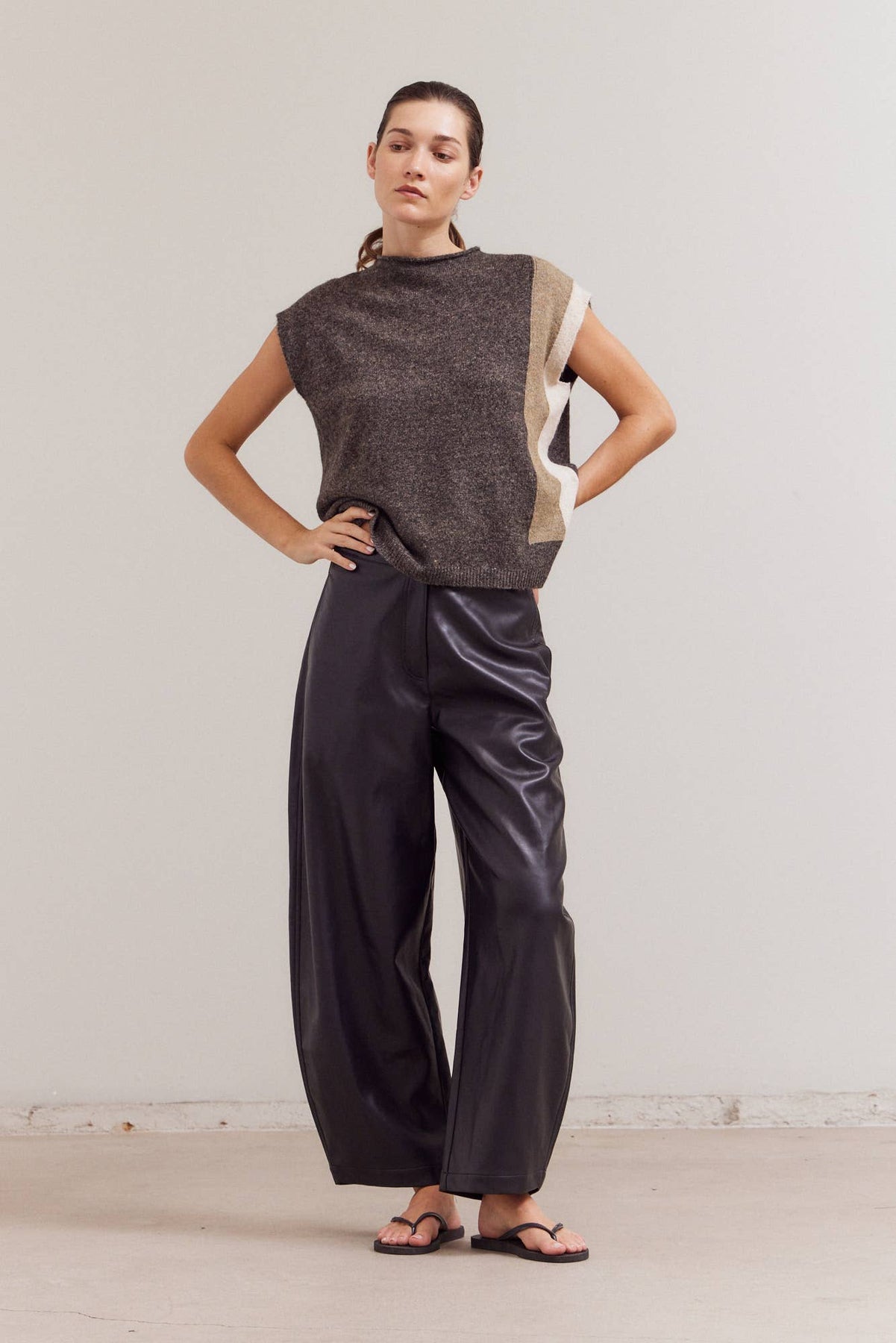This is a cozy sleeveless sweater vest featuring a neutral gradient.