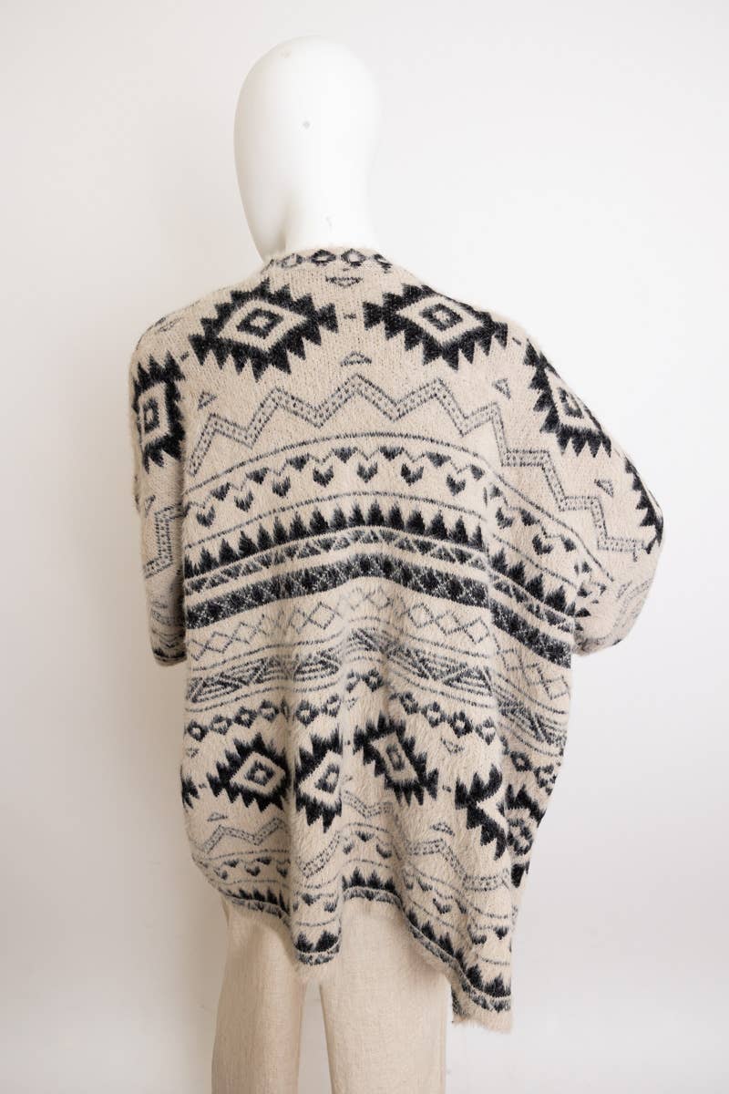 Check out this laid-back, free-spirited cardigan with an Aztec print. Its striking patterns bring a unique touch to your outfits, while the relaxed fit makes layering simple and comfortable. Ideal for adding a boho vibe to your wardrobe, this cardigan with be the perfect layer for the cold weather months.