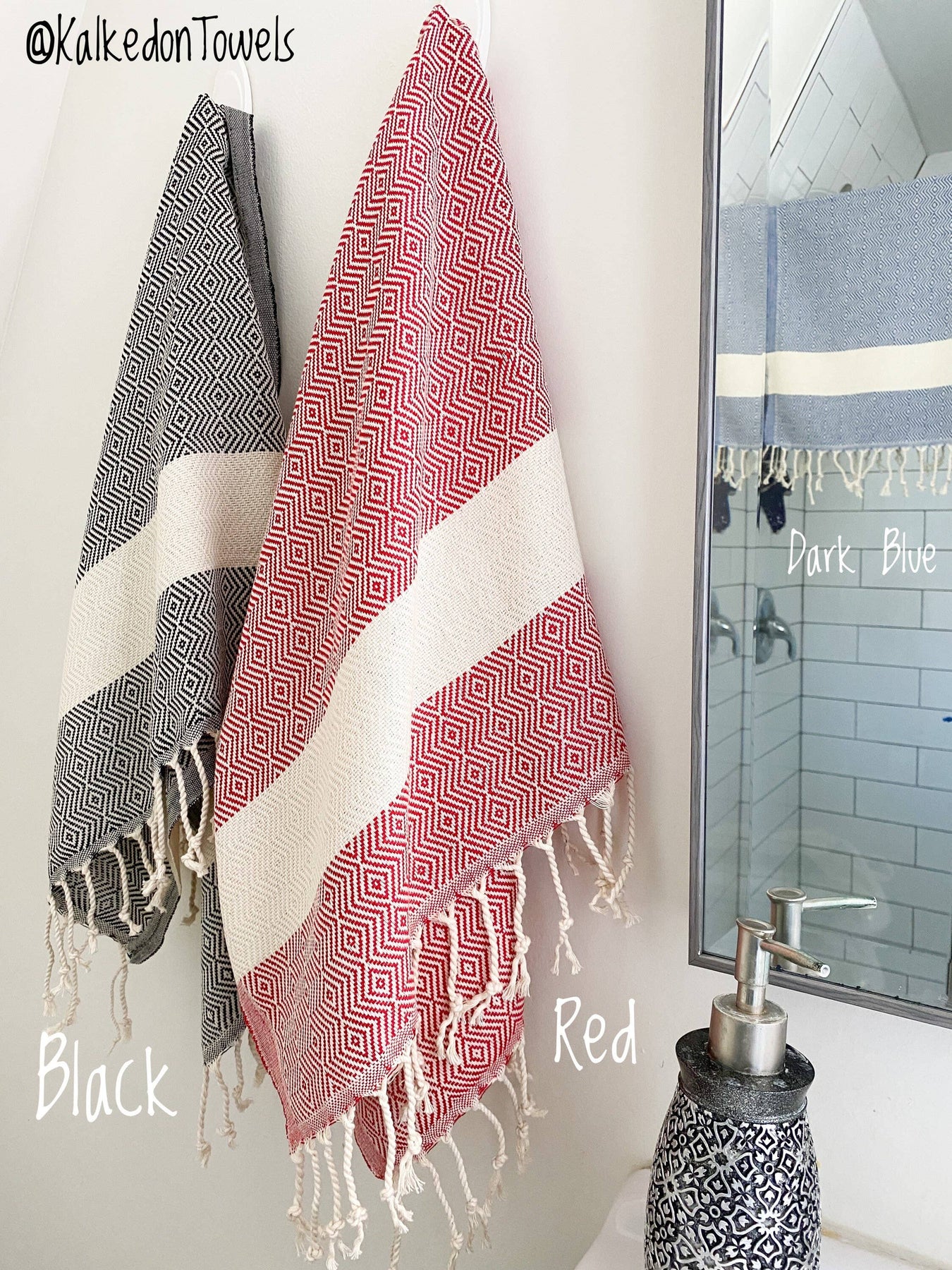 Trendy beautiful woven design available in diamond or stripe pattern. Supreme quality fabric made out of 100% soft turkish cotton. Larger and thinner than traditional kitchen/hand towels No mildew smell and highly absorbent!