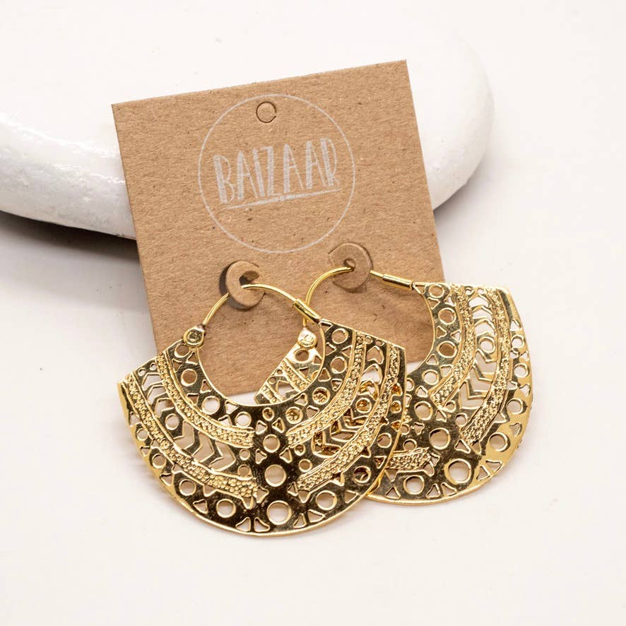 Brass Double Stone Stud Dangle Earring: Turquoise-Amazonite
