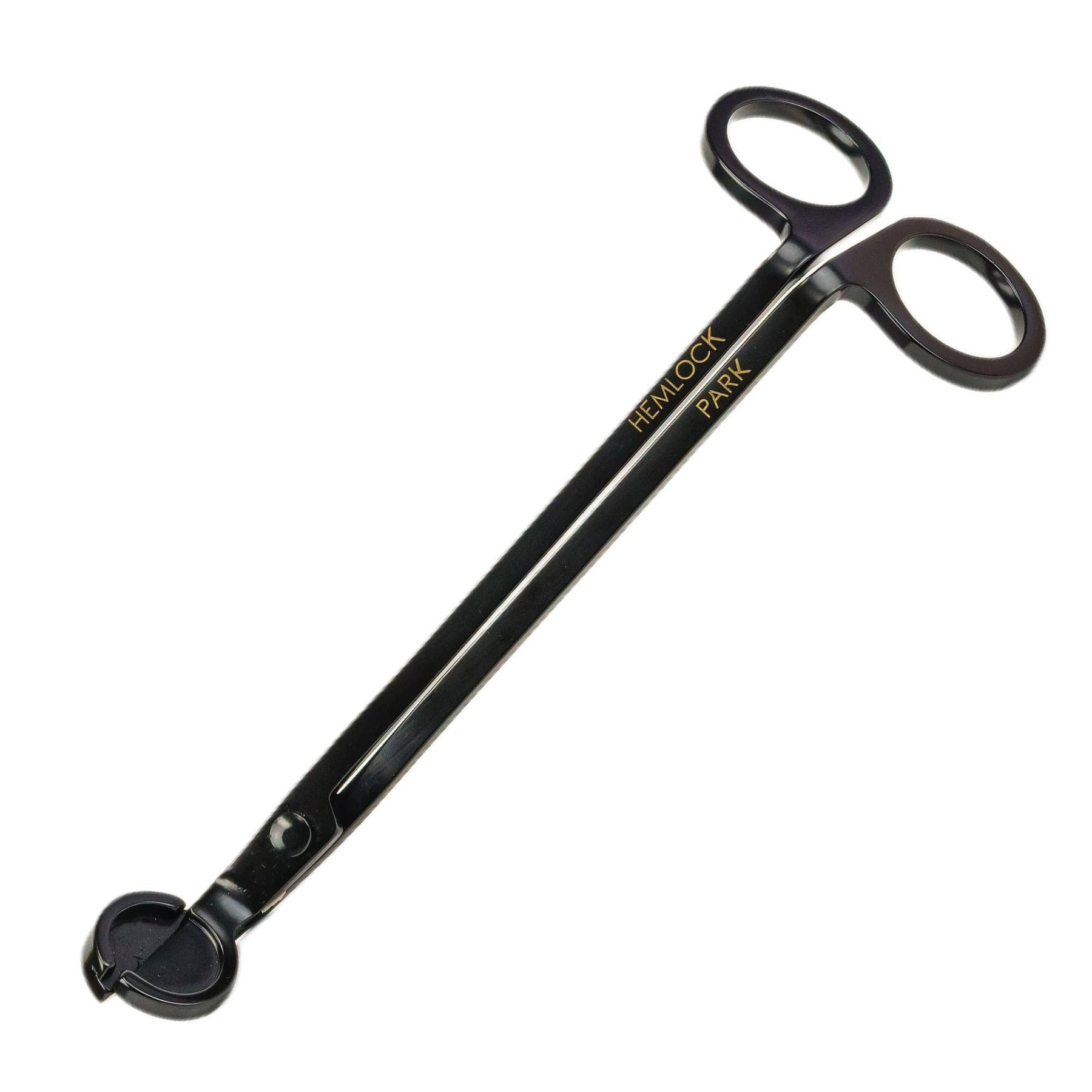 Matte Black Wick Trimmer, individually packaged in a velvet pouch. Crafted from quality stainless steel, this wick trimmer helps maintain optimal candle performance by trimming wicks to the ideal length, reducing soot, smoke, and extending burn time.